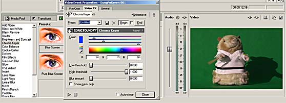 Chromakey is one of the many effects offered in Vegas Movie Studio (VideoFactory 2) after purchase by Sony).