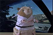 Here is our starting hamster. We shoot him against a green background. You can purchase seamless paper in Chroma Key Green (called "Stinger") & Chroma Key Blue (called "Royal Blue") from camera stores selling "Premier" brand seamless. This example used some cheap green paper (a couple of dollars) from the educational/teacher supplies section of U.S. Toy Company in Lenexa, KS, just to show that you don't have to spend the hundreds of dollars that Chroma Key background cloths will cost you. At Overland Camera Store in Overland Park, KS the seamless rolls cost $27 in 53-inch wide size and $50 in 9-foot wide size. A similar size cloth background may cost $300-$700 locally. Buy the paper.