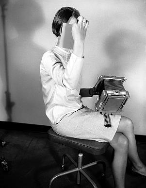 Sara holds up a gray card so that I have an exposure reference in the scene (summer 1976, portrait session).