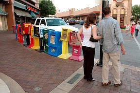 In shadow and with white balance set for sunlight. This is too blue. Not so bad but the yellows and reds are very dim. Even the blue is not very bright.Same location setting white balance for open shade (usually a Cloud icon in the camera.) Much brighter, livelier image. Outdoor shot set for tungsten film. Overall blue cast. Items in picture blend.A few minutes later with white balance set for sunlight. Now we can differentiate the items in the picture.