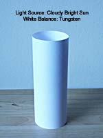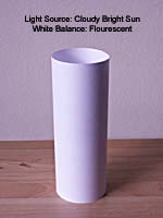 This is a comparison of White Balance Settings on a white paper. The lightsource in all cases is daylight, cloudy bright. Each white balance setting is a compensation for the spectrum put out by each type of light source. Using the right white balance setting produces correct colors. Light Source: