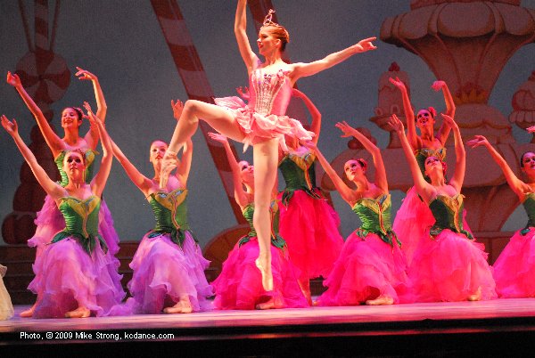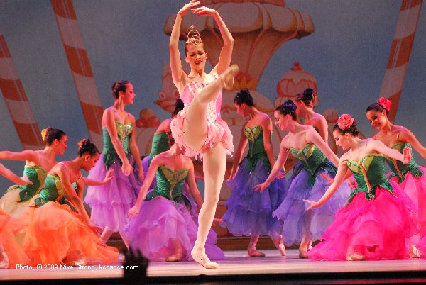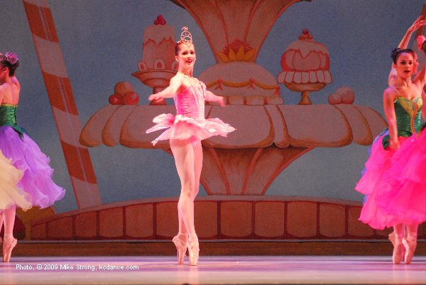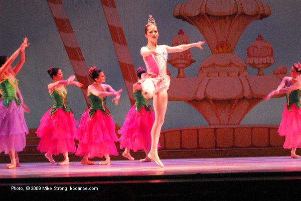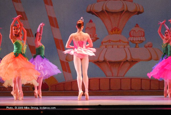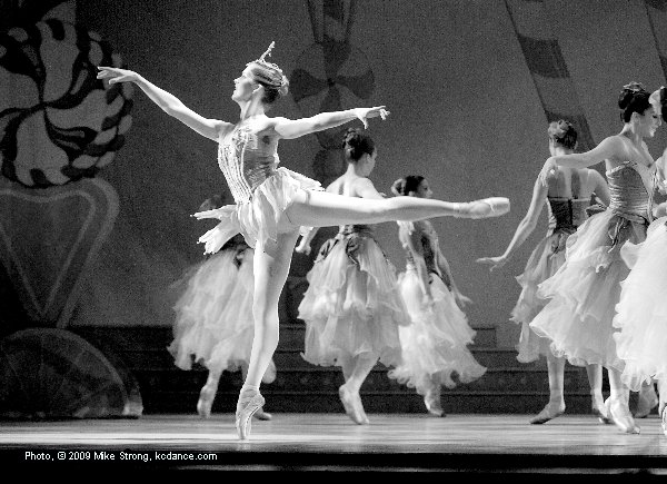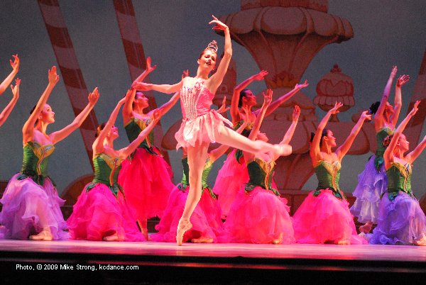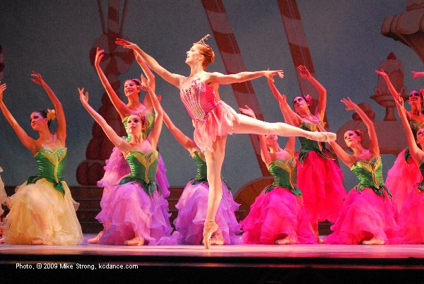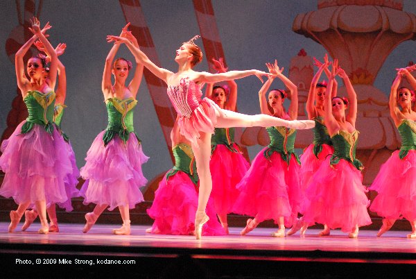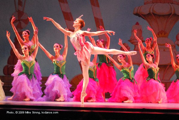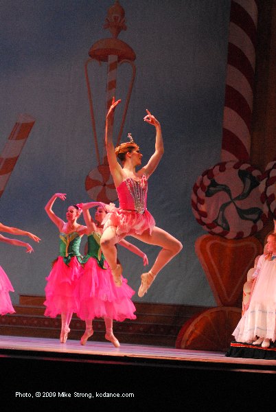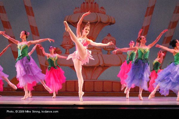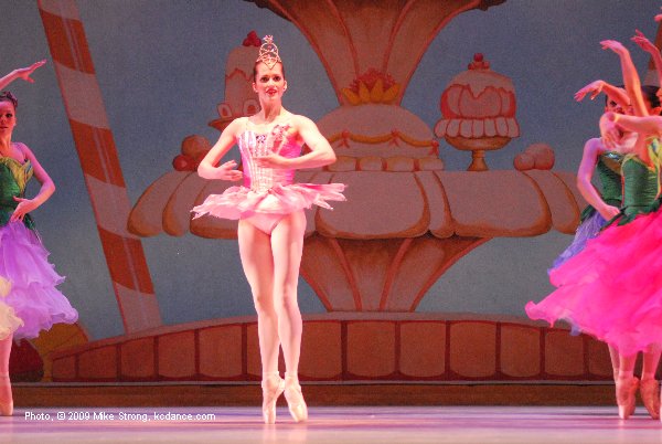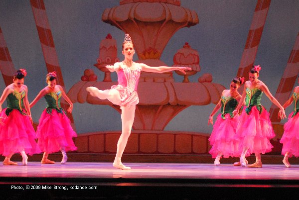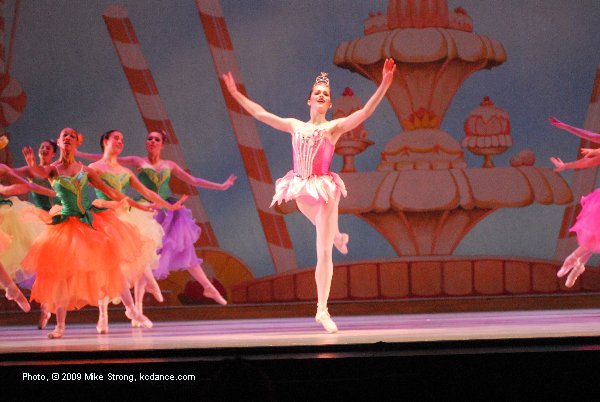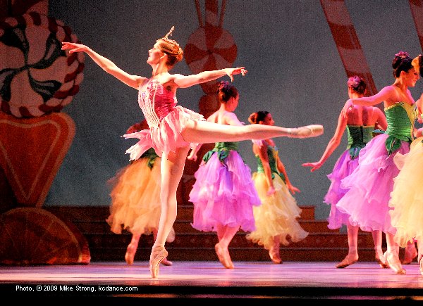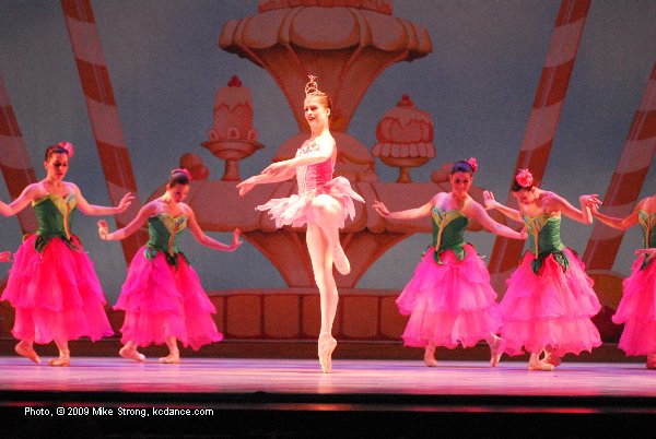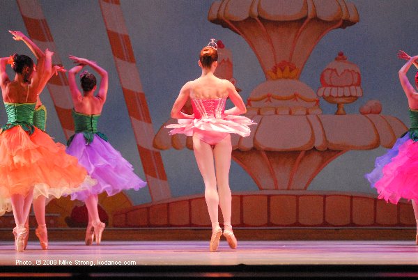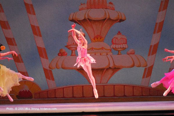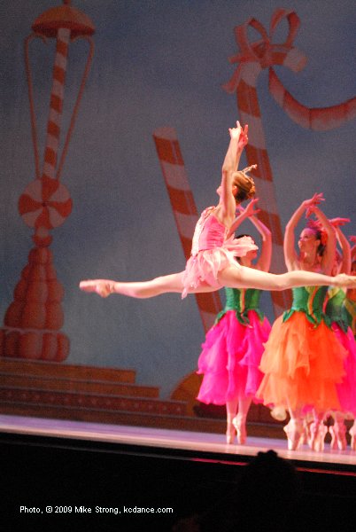 The corps' arms sway from one side to another and in the fourth frame (2649) the corps even stands. As you notice this watch Rachel's position by looking at the candy canes behind her head. She moves a small amount to the right each time. The camera, on a tripod, remained where it was and the picture frames were shot across several beats of music. Using continuous drive would have completely lost this sequence.