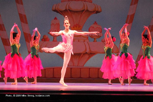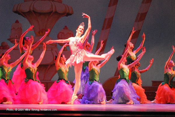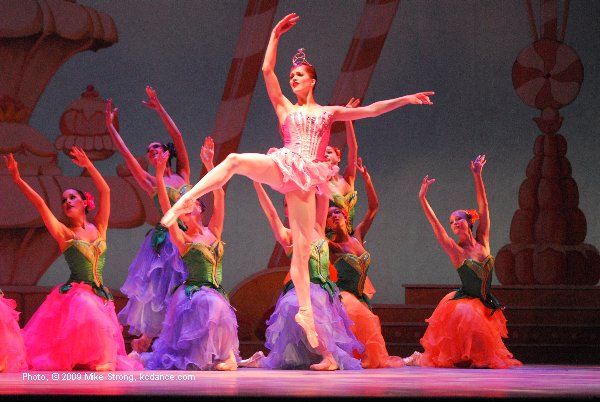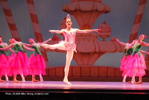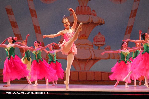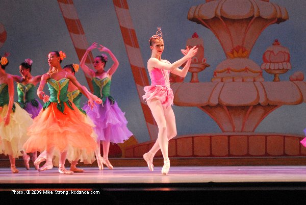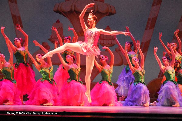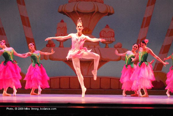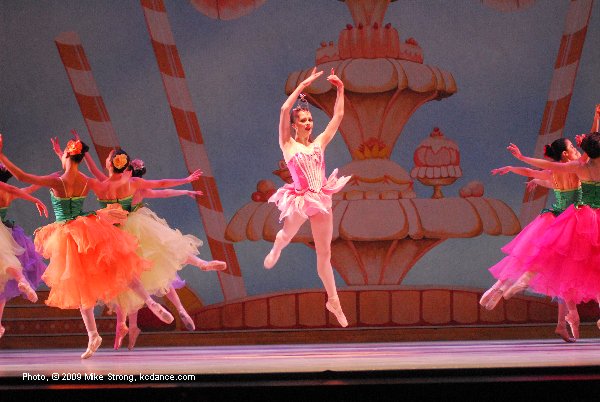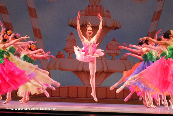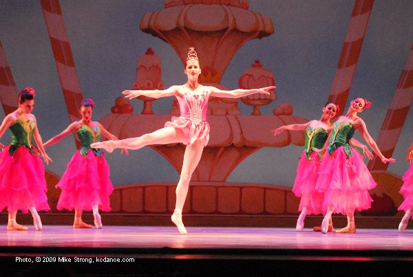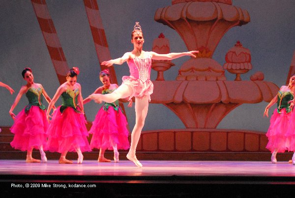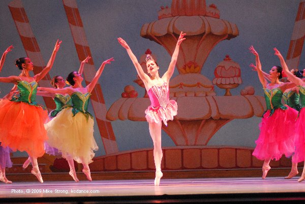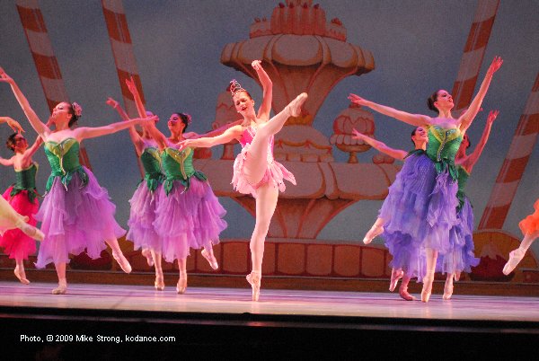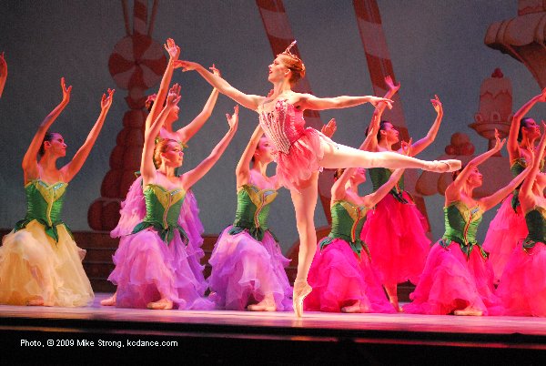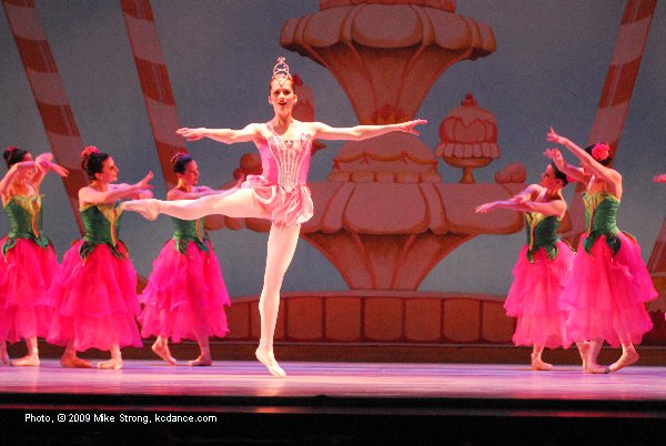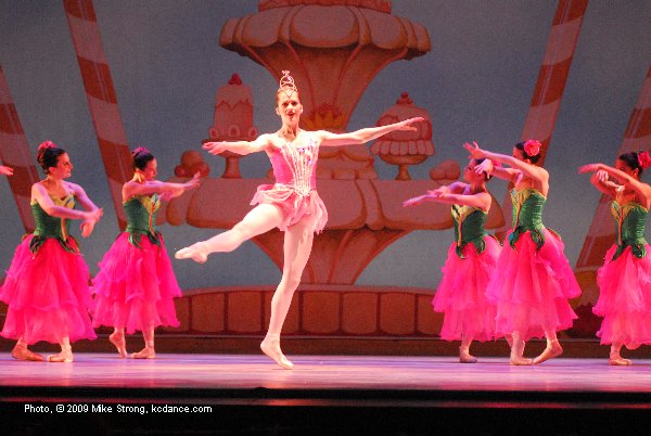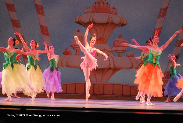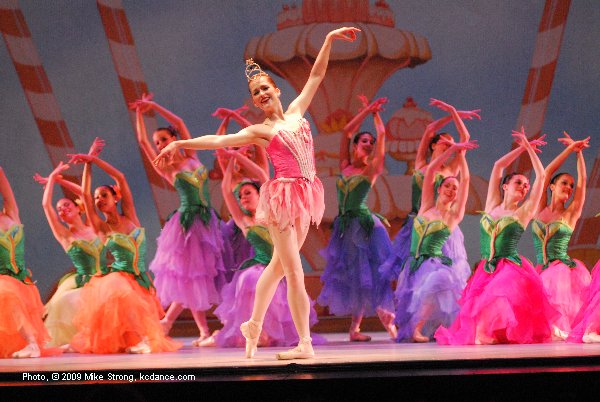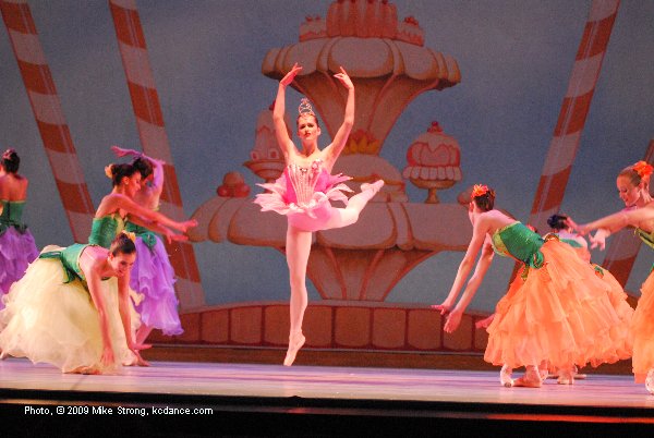 The corps' arms sway from one side to another and in the fourth frame (2649) the corps even stands. As you notice this watch Rachel's position by looking at the candy canes behind her head. She moves a small amount to the right each time. The camera, on a tripod, remained where it was and the picture frames were shot across several beats of music. Using continuous drive would have completely lost this sequence.